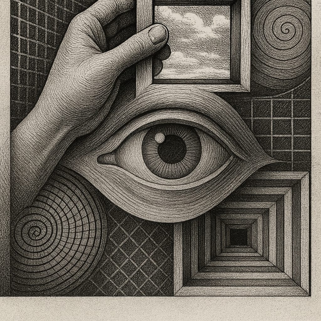 And here’s the trap: you cannot step outside to inspect the frame, because you are the frame. Any attempt to examine your perceptual limits uses the very apparatus you’re trying to examine. Consciousness studying consciousness. The eye trying to see itself seeing.